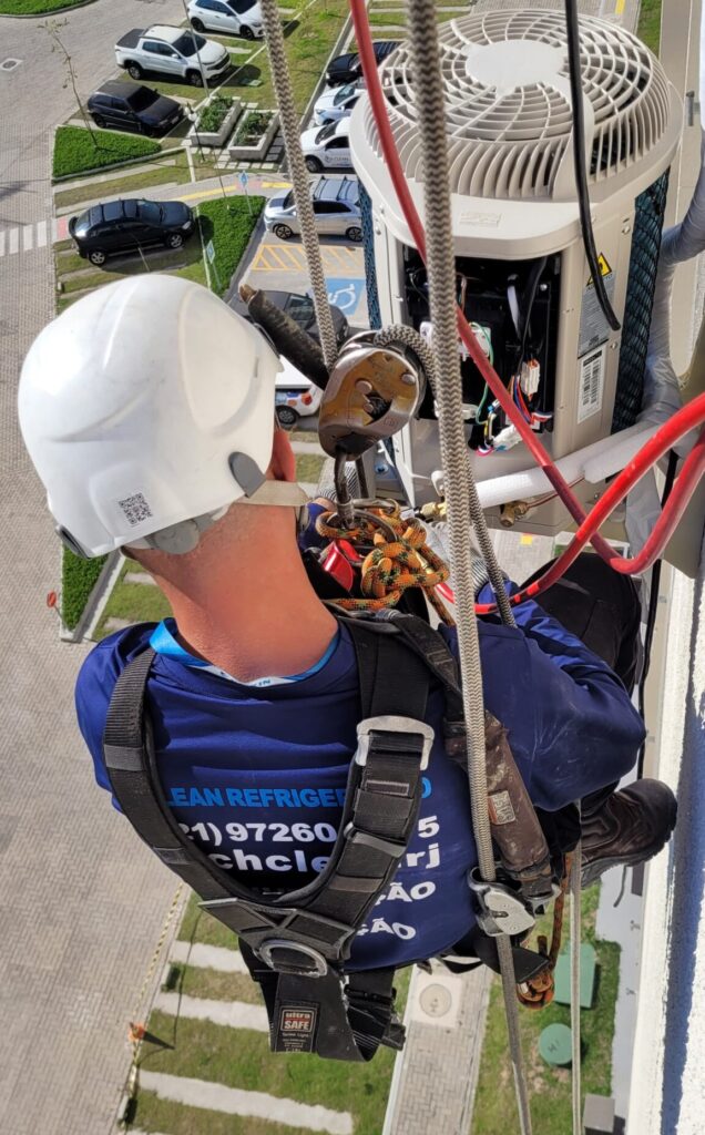 A instalação de ar-condicionado acesso por corda pela Clean CH é ideal para locais de difícil acesso ou grandes alturas.